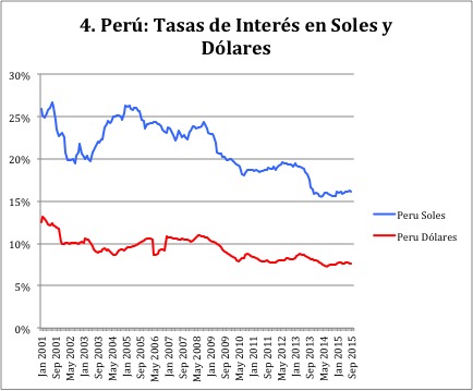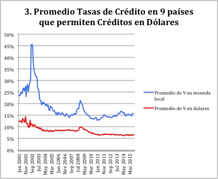 Pero siempre hay gente que puede tomar créditos en dólares porque gana en dólares, por ser exportadores, o que puede ofrecer garantías en dólares, por tener cuentas en EE.UU. Entonces, usted termina con un país en el que hay gente que, por el mismo crédito, con el mismo riesgo, paga sólo 6 por ciento (los que tienen acceso al crédito en dólares) y otra que paga 16 por ciento (los que tienen que tomar prestado en moneda local). Esto no sólo es injusto sino que también crea desbalances en la competencia.