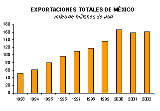 En los años del TLC las exportaciones totales mexicanas se han triplicado al pasar de 52.000 millones de dólares en 1993 a 161.000 millones en el 2002. Este es un ritmo de crecimiento de 12% al año, superior incluso al de los tigres asiáticos. De déficit crónicos en balanza comercial con Estados Unidos, a partir del tratado hemos tenido superávit crecientes. Tan sólo el año pasado fue de más de 37.000 millones de dólares.