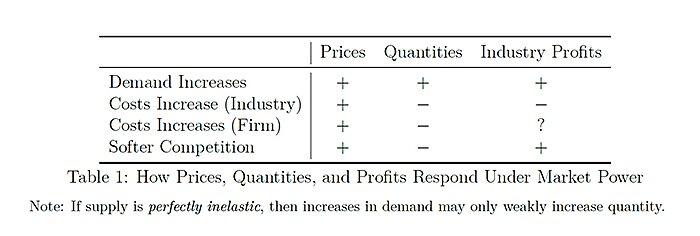Si dejamos de lado a las empresas que fijan los precios anticipando cambios futuros en las condiciones, Conlon utiliza la teoría microeconómica para demostrar que hay esencialmente tres razones por las que una empresa que maximiza sus beneficios sube los precios: